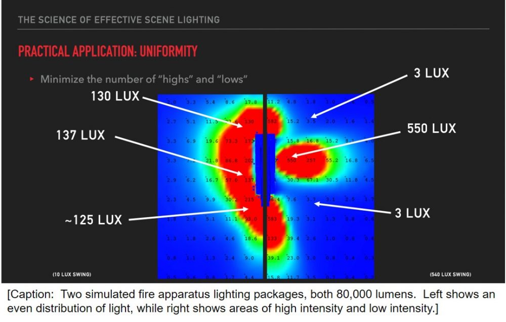 Every fire department’s got one of them, or if they don’t, they know one of them: the person who knows every little model number and fact about every light fixture on the market. They can state how many flashes per second, how many lumens, and what the year a specific fixture was released. But, as valuable as all that data is, can this person also articulate where the optimal placement of each fixture is so that firefighters aren’t blinded when they are on scene at their next emergency?